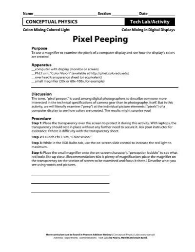 Read Online answers to pixel peeping lab Epub online is a convenient and frugal way to read answers to pixel peeping lab you love right from the comfort of your own home. Yes, there sites where you can get Epub "for free" but the ones listed below are clean from viruses and completely legal to use.