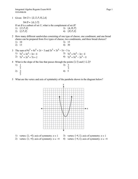Read Online Integrated Algebra Regents Exam 0610 Answers Epub